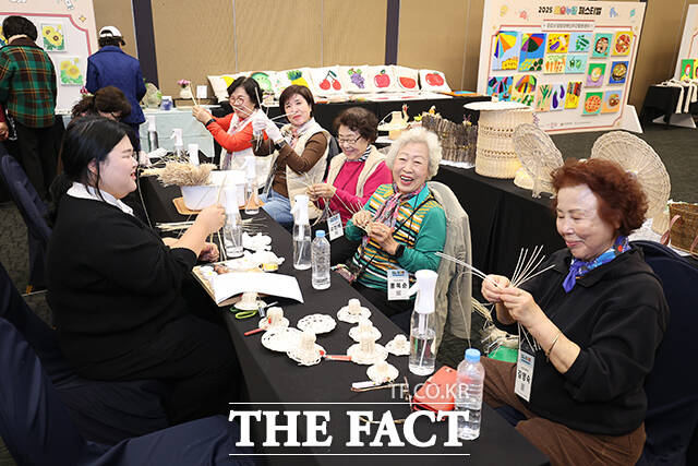 [더팩트ㅣ서예원 기자] 관객들이 11일 오후 더케이호텔 경주에서 열린 '2025 예술누림 페스티벌'의 체험부스를 이용하고 있다.