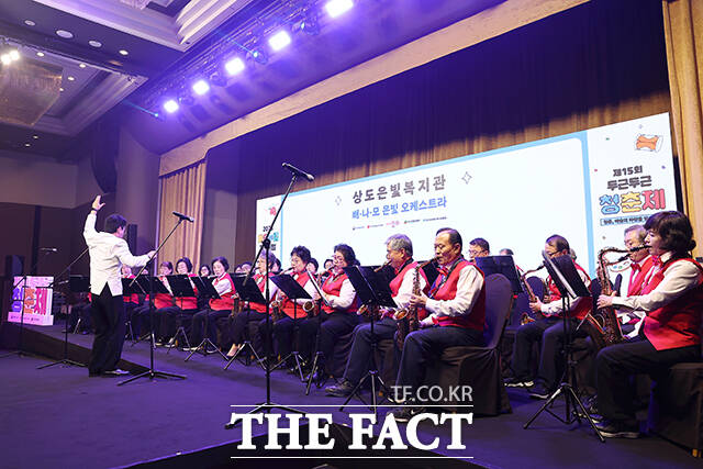 [더팩트ㅣ서예원 기자] 상도은빛복지관 이용자들이 11일 오후 더케이호텔 경주에서 열린 '2025 예술누림 페스티벌'에서 공연을 하고 있다.