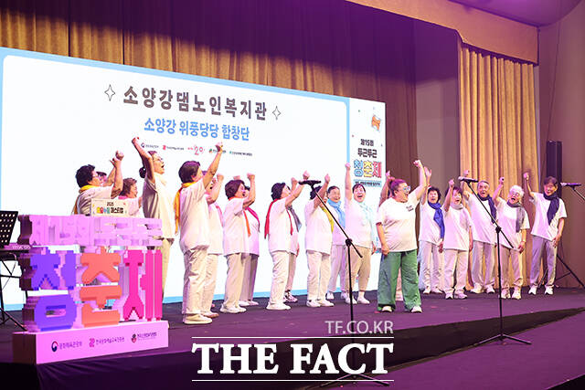 [더팩트ㅣ서예원 기자] 소양강댐노인복지관 이용자들이 11일 오후 더케이호텔 경주에서 열린 '2025 예술누림 페스티벌'에서 공연을 하고 있다.