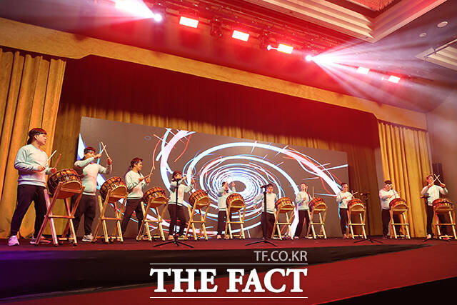[더팩트ㅣ서예원 기자] 라브리주간보호센터 이용자들이 13일 오후 더케이호텔 경주에서 열린 '2025 예술누림 페스티벌'에서 공연을 하고 있다.