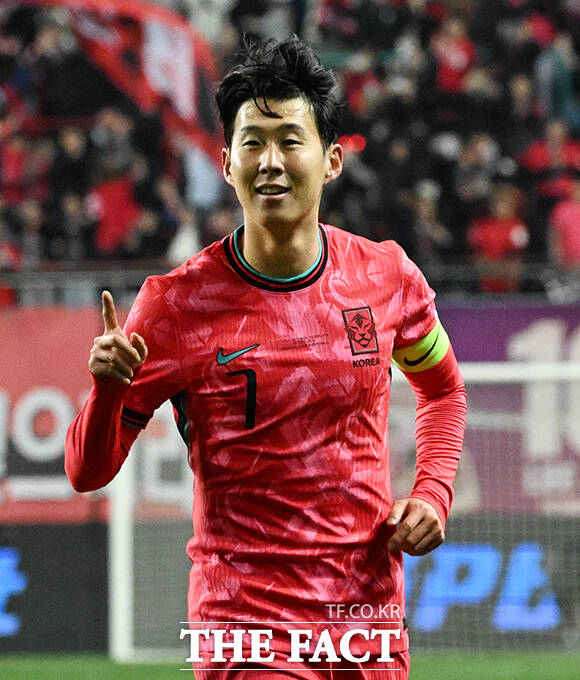 대한민국과 볼리비아의 평가전이 13일 오후 대전 유성구 대전월드컵경기장에서 열린 가운데 손흥민이 득점 후 기뻐하고 있다. /대전월드컵경기장=박헌우 기자