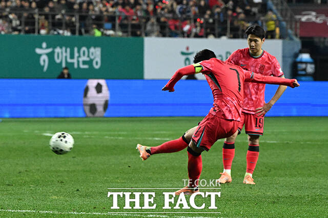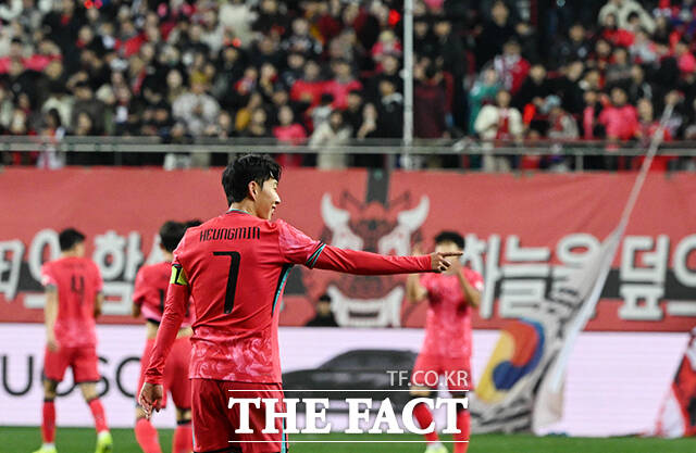 [더팩트|대전월드컵경기장=박헌우 기자] 대한민국과 볼리비아의 평가전이 13일 오후 대전 유성구 대전월드컵경기장에서 열린 가운데 손흥민이 득점 후 기뻐하고 있다.