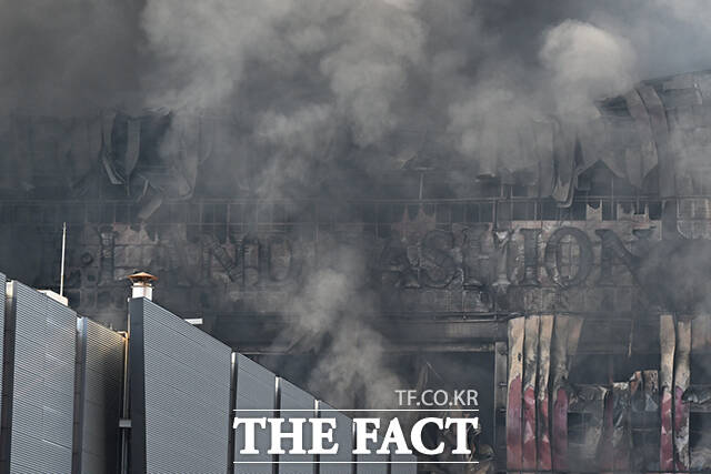 '화염·연기' 휩싸인 천안 이랜드 물류센터...'9시간30분 만에 초진' [TF사진관]
