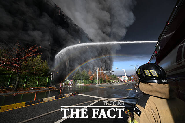 소방당국은 오전 6시 15분 대응 1단계를 발령한 데 이어 물류센터 안에 있는 옷가지 등에 의해 불이 빠르게 번지자 오전 7시 1분 대응 2단계로 격상했다.