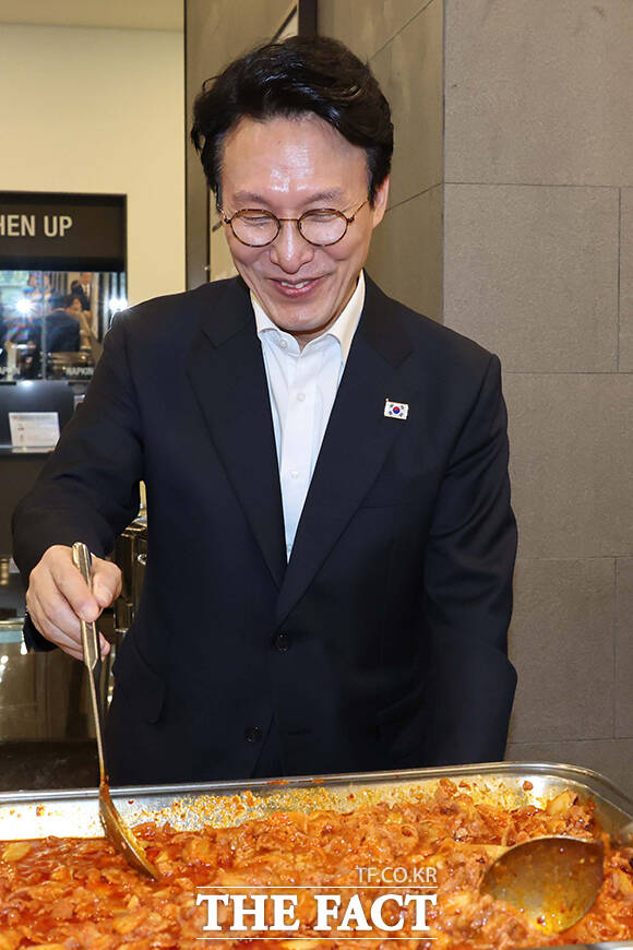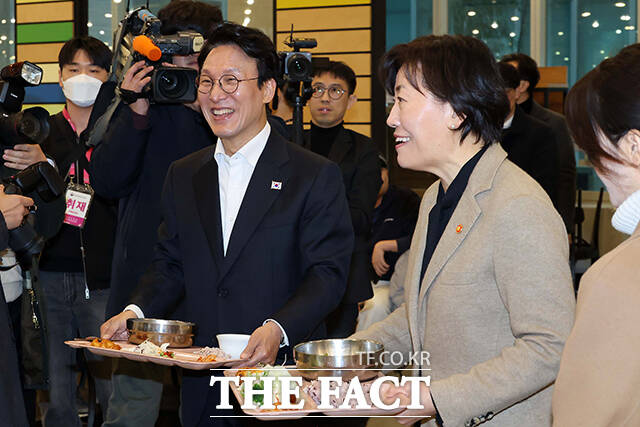 이날 김민석 총리는 송미령 농림축산식품부 장관과 함께 '천원의 아침밥'을 제공하는 서울 성균관대학교 은행골식당을 찾아 재학생들과 함께 아침식사를 하며 대화를 나누고 식당 종사자들을 격려했다.