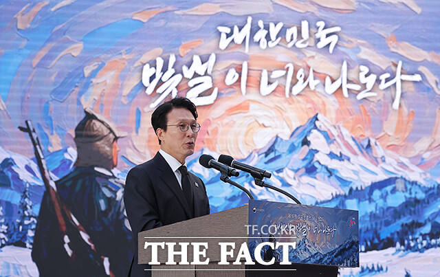 [더팩트ㅣ임영무 기자] 김민석 국무총리가 17일 오후 서울 노원구 육군사관학교에서 열린 제86회 순국선열의 날 기념식에서 기념사를 하고 있다.