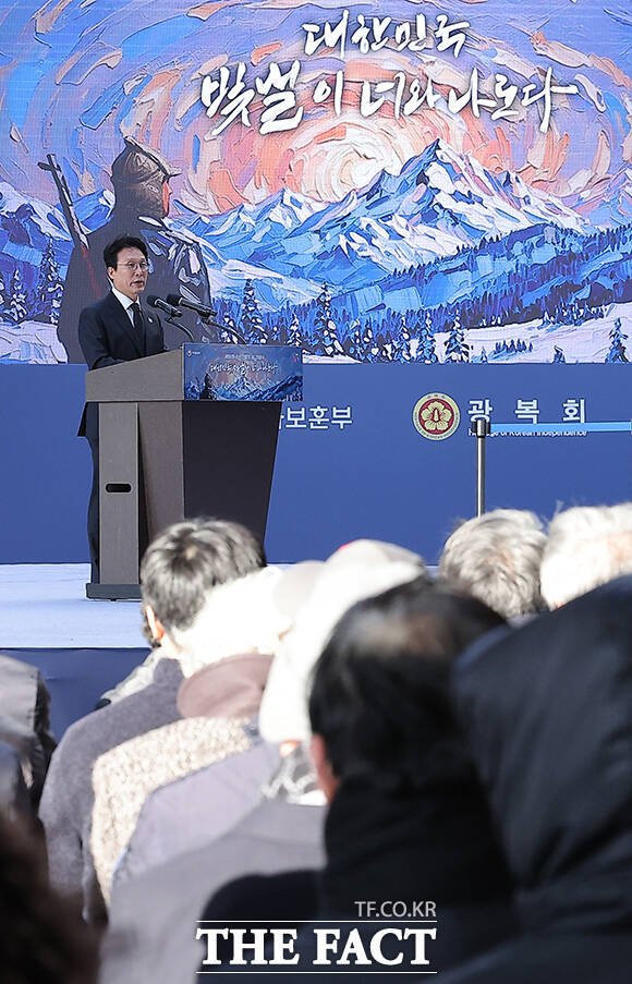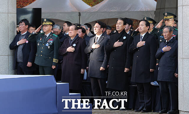 [더팩트ㅣ임영무 기자] 김민석 국무총리가 17일 오후 서울 노원구 육군사관학교에서 열린 '순국선열의 날' 기념식에서 기념사를 하고 있다.