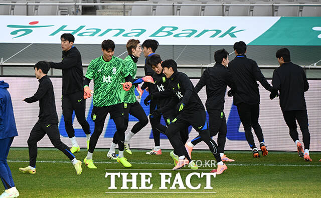 [더팩트ㅣ서울월드컵경기장=박헌우 기자] 대한민국 축구 국가대표팀이 17일 오후 서울 마포구 서울월드컵경기장에서 가나전을 앞두고 훈련하고 있다.