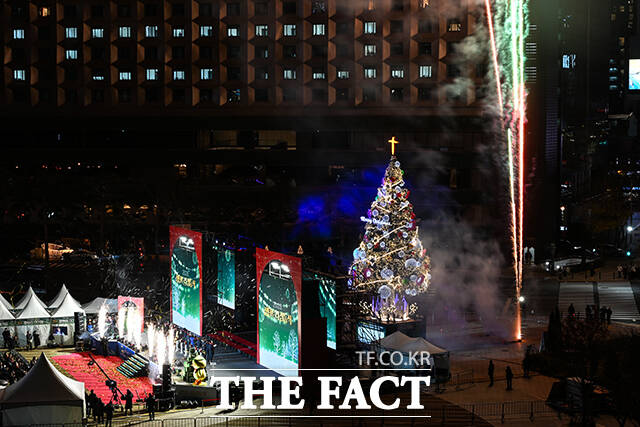 [더팩트ㅣ서예원 기자] 2025 대한민국 성탄 축제 ‘성탄트리 점등식’이 17일 오후 서울 중구 서울시청 앞 서울광장에서 열린 가운데 성탄트리가 환하게 불을 밝히고 있다.