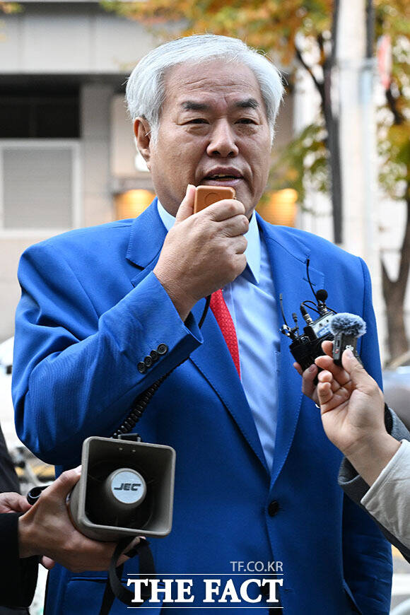 [더팩트ㅣ남용희 기자] 서울서부지방법원 폭력 난동 사태의 배후로 지목된 전광훈 사랑제일교회 목사가 18일 오전 서울 종로구 서울경찰청에 피의자 신분으로 출석하며 입장을 밝히고 있다.