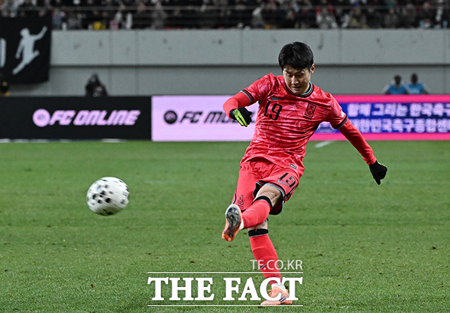 [더팩트ㅣ서울월드컵경기장=박헌우 기자] 대한민국과 가나의 A매치 친선경기가 18일 오후 서울 마포구 서울월드컵경기장에서 열린 가운데 이강인이 프리킥을 차고 있다.