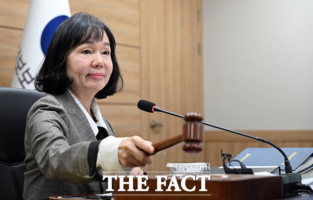 [더팩트ㅣ임영무 기자] 송경희 개인정보보호위원회 위원장이 20일 오후 서울 종로구 정부서울청사에서 열린 23회 전체회의에 참석해 의사봉을 두드리고 있다.