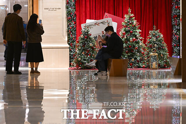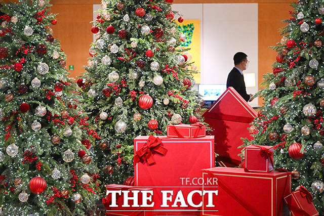 [더팩트ㅣ서예원 기자] 크리스마스를 약 한달 앞둔 21일 오후 서울 중구 롯데호텔 서울 로비에 크리스마스 트리가 조성되어 있다.