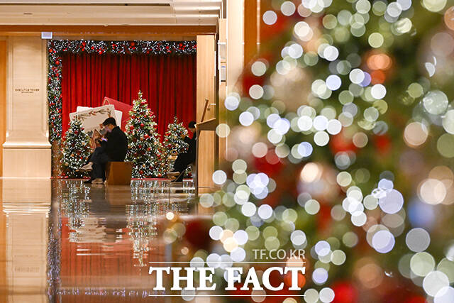 크리스마스를 약 한달 앞둔 21일 오후 서울 중구 롯데호텔 서울 로비에 크리스마스 트리가 조성되어 있다. /서예원 기자