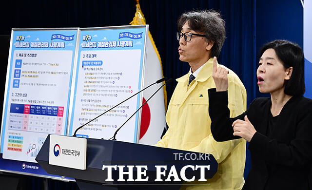 [더팩트ㅣ임영무 기자] 금한승 기후에너지환경부 1차관이 24일 오전 서울 종로구 정부서울청사에서 제7차 미세먼지 계절관리제 시행계획을 브리핑하고 있다.