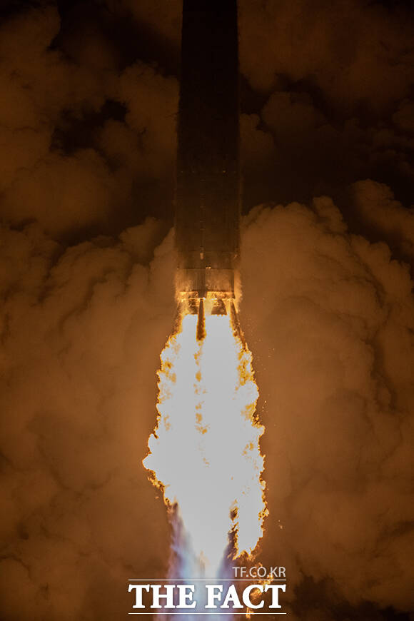 [더팩트ㅣ여수=박헌우 기자] 한국형 발사체 누리호가 27일 새벽 전남 고흥군 나로우주센터에서 발사되고 있다.