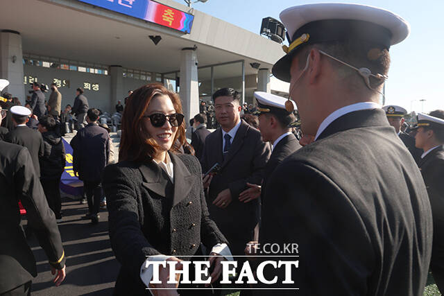 [더팩트ㅣ창원=임영무 기자] 임세령 대상 그룹 부회장(왼쪽)이 28일 오후 경남 창원 해군사관학교에서 열린 제139기 해군·해병대 사관후보생 수료 및 임관식에 참석해 아들 이지호 신임 장교의 임관을 축하하고 있다.
