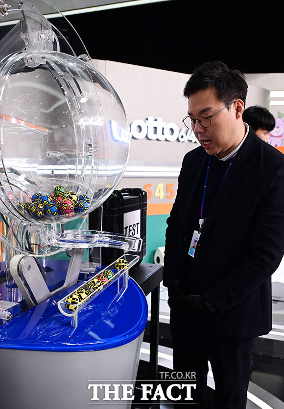 [더팩트ㅣ임영무 기자] 대국민 로또6/45 추첨 준비과정 공개가 29일 오후 서울 마포구 상암 MBC에서 열린 가운데 동행복권 관계자가 추첨기에 사용될 추첨볼을 점검하고 있다.