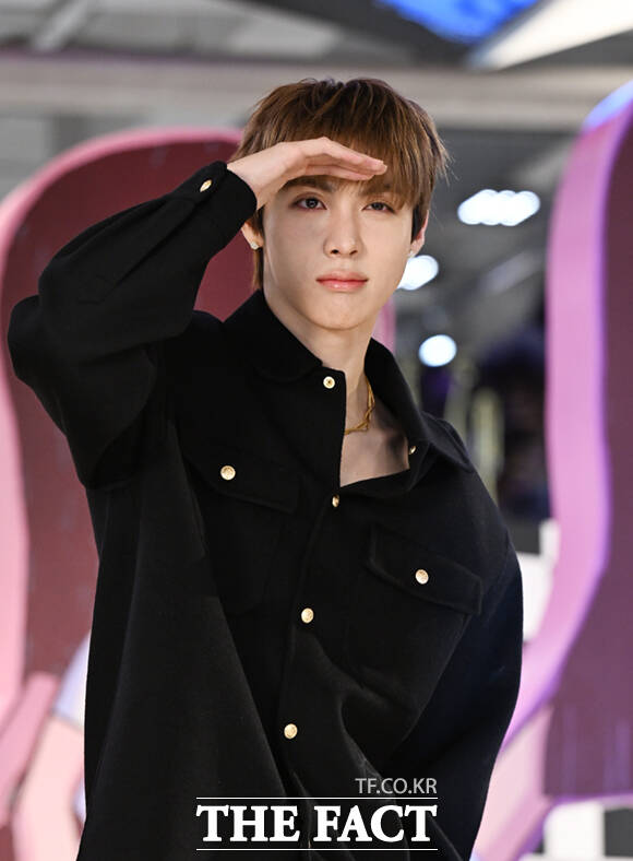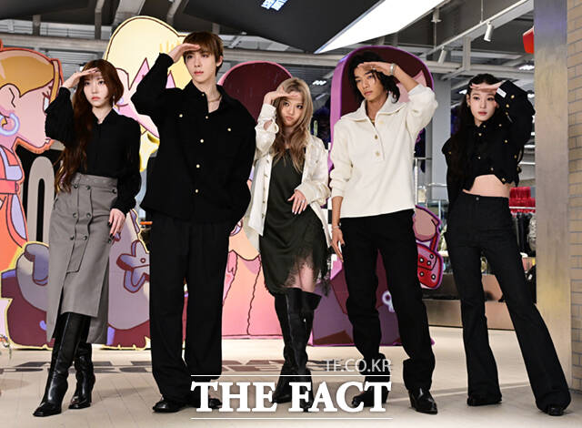 [더팩트ㅣ이새롬 기자] 올데이프로젝트 영서와 우찬, 베일리, 타잔, 애니(왼쪽부터)가 8일 서울 성동구 에스팩토리에서 열린 첫번째 EP '올데이 프로젝트(ALLDAY PROJECT)' 발매 기념 팝업 스토어 오픈 이벤트에 참석해 포즈를 취하고 있다.