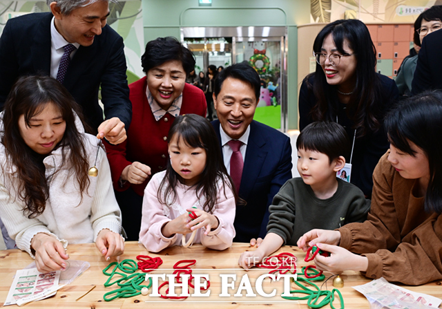 [더팩트ㅣ이새롬 기자] 오세훈 서울시장이 12일 서울 강서구 서울키즈플라자 개관식에 참석해 어린이들의 체험활동을 살펴보고 있다.