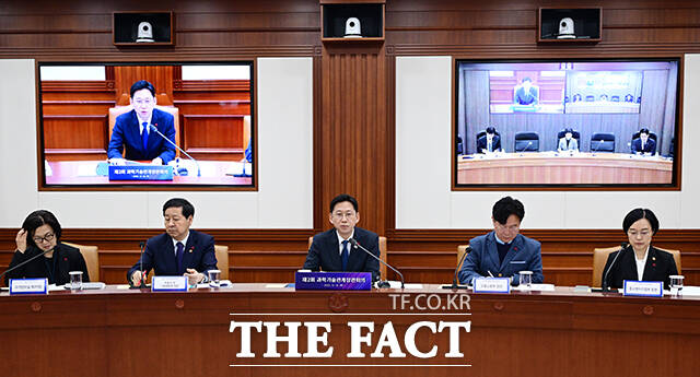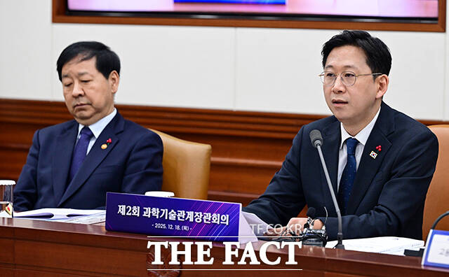 [더팩트ㅣ임영무 기자] 배경훈 부총리 겸 과학기술정보통신부 장관이 18일 오전 서울 종로구 정부서울청사에서 열린 과학기술관계장관회의에 참석해 모두발언을 하고 있다.