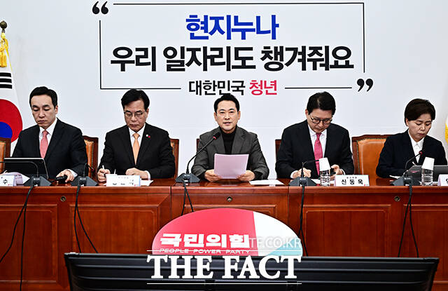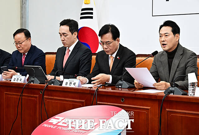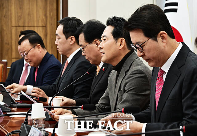 [더팩트ㅣ국회=배정한 기자] 장동혁 국민의힘 대표가 18일 오전 서울 여의도 국회에서 열린 최고위원회의에 참석하고 있다.