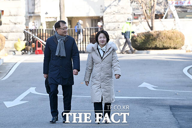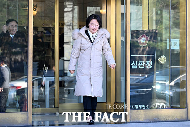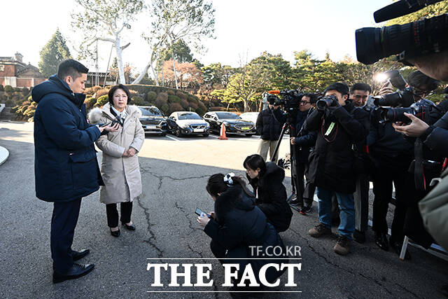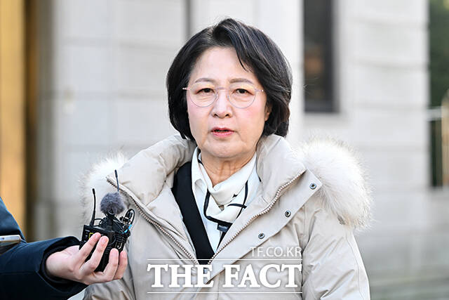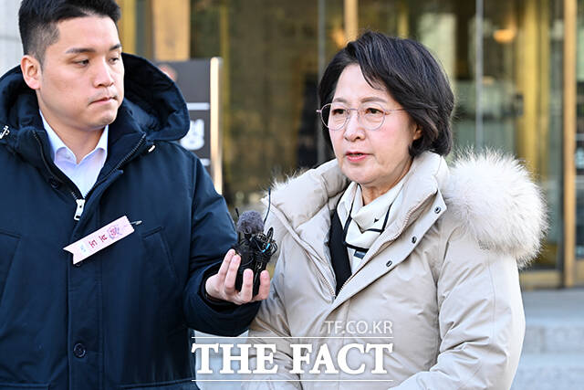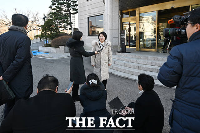 [더팩트ㅣ서예원 기자] 추미애 국회 법제사법위원장이 18일 오후 서울 종로구 헌법재판소에서 열린 조지호 경찰청장 탄핵심판 사건 선고기일 참석하며 취재진의 질문에 답변하고 있다.