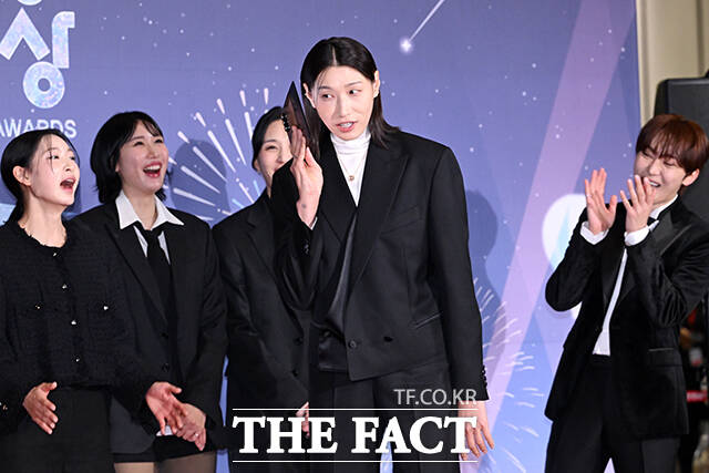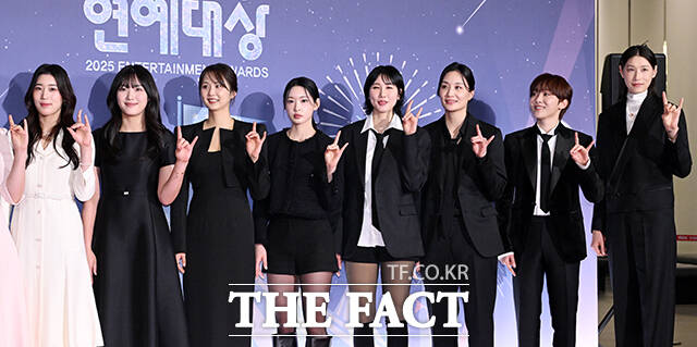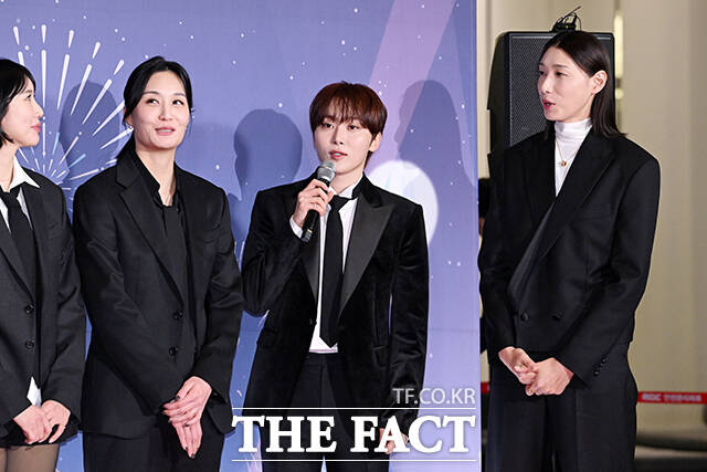 [더팩트ㅣ서예원 기자] 전 배구선수 김연경과 그룹 세븐틴의 승관을 포함한 '신인감독 김연경' 출연진들이 29일 오후 서울 마포구 MBC 미디어센터에서 열린 ‘2025 MBC 방송연예대상’ 레드카펫에 참석해 포즈를 취하고 있다.