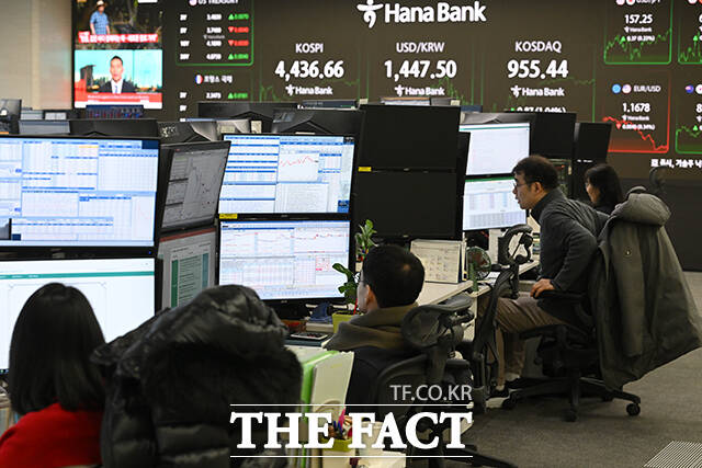 [더팩트ㅣ서예원 기자] 코스피가 사상 최고치를 경신한 5일 오후 서울 중구 하나은행 딜링룸 전광판에 지수가 표시되고 있다.