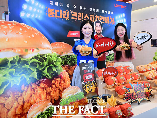 [더팩트ㅣ이새롬 기자] 롯데 GRS(대표이사 이원택)가 운영하는 버거 프랜차이즈 롯데리아가 '통다리 크리스피치킨버거' 2종을 출시한 가운데, 6일 서울 용산구 롯데리아 숙대입구역점에서 모델들이 신제품을 선보이고 있다.