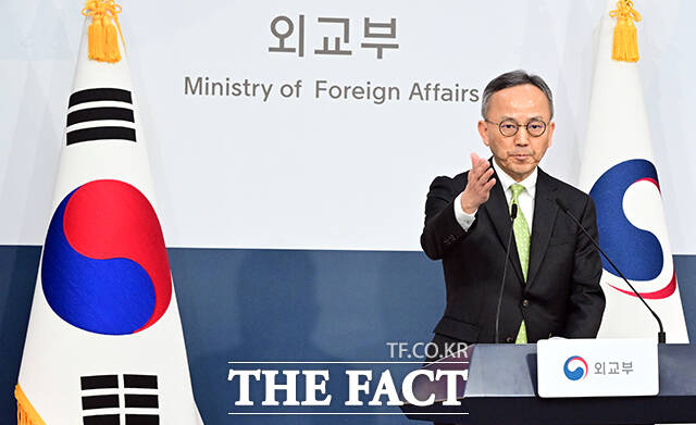 [더팩트ㅣ임영무 기자] 박일 외교부 대변인이 6일 오후 서울 종로구 외교부에서 현안 관련 정례브리핑을 하고 있다.