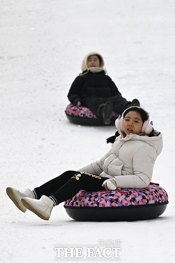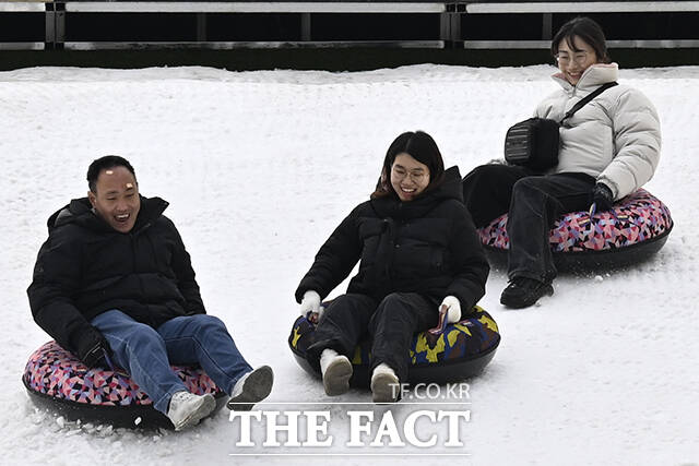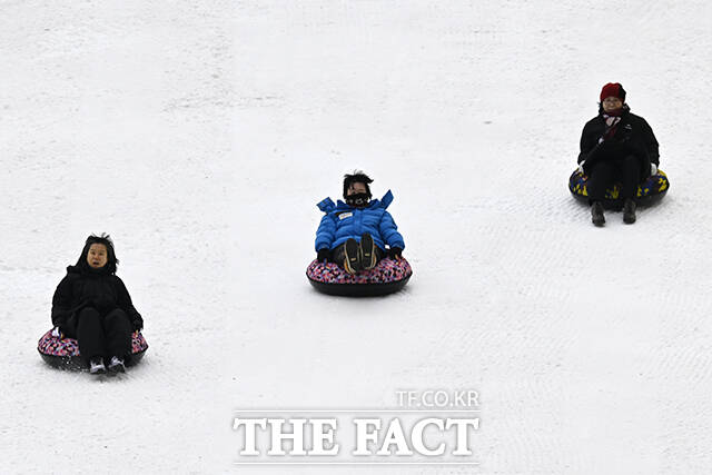 [더팩트 | 송호영 기자] 노원구가 '2026 노원 눈썰매장 장애인 가족 초청행사'를 12일 서울 노원구 서울과학기술대학교 종합운동장에서 개최한 가운데 참가자들이 눈썰매를 타고 있다.