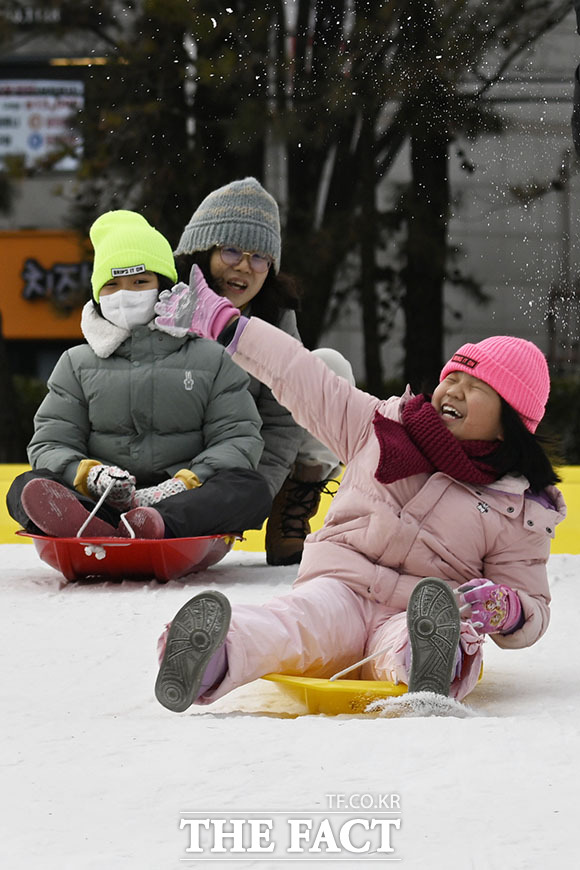 [더팩트 | 송호영 기자] 노원구가 '2026 노원 눈썰매장 장애인 가족 초청행사'를 12일 서울 노원구 서울과학기술대학교 종합운동장에서 개최한 가운데 참가자들이 눈썰매를 타고 있다.
