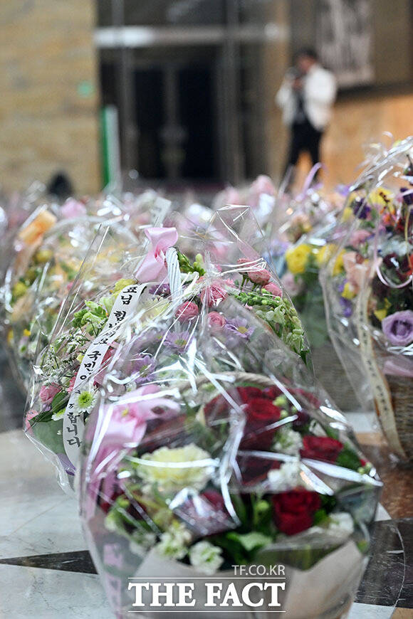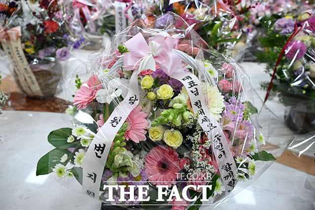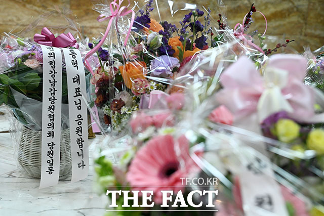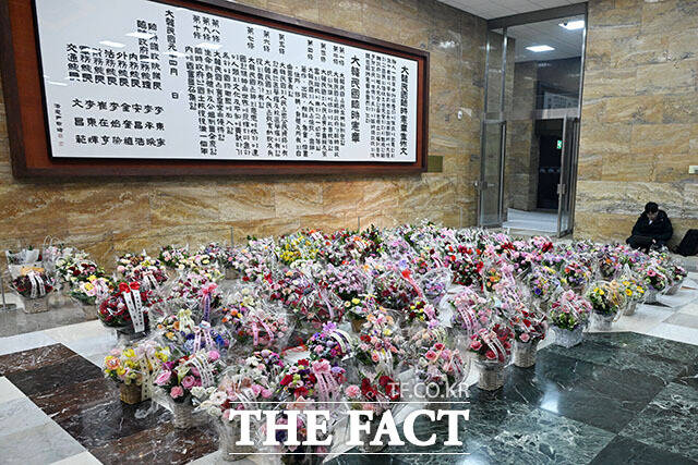 [더팩트ㅣ국회=남용희 기자] 장동혁 국민의힘 대표의 단식 농성 닷새째인 19일 오전 서울 여의도 국회 로텐더홀 단식농성장 인근에 장 대표를 응원하기 위한 꽃바구니가 놓여있다.