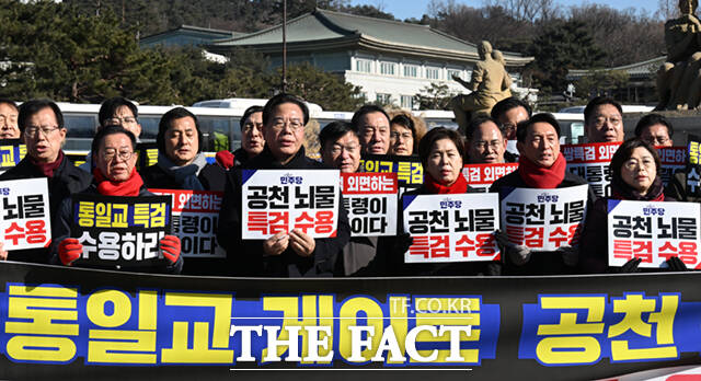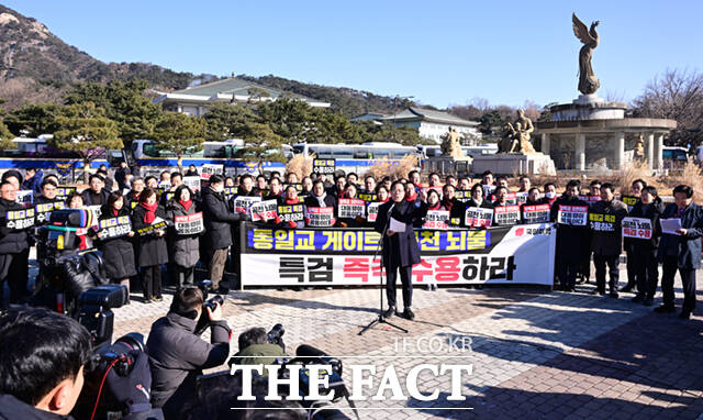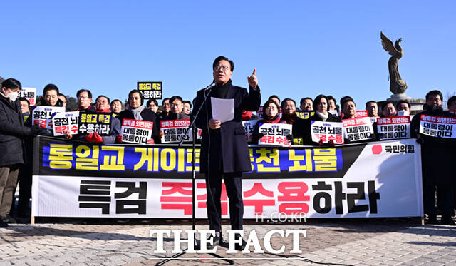이어 "통일교 게이트, 공천 뇌물, 정치권의 뿌리 깊은 이 검은 돈을 뿌리 뽑자는 특검 요구를 왜 외면하냐"며 "오히려 민주당은 특검 앞에서 이성을 잃은 채 내로남불의 집단 광기에 취해 폭주를 거듭하고 있다"고 했다.