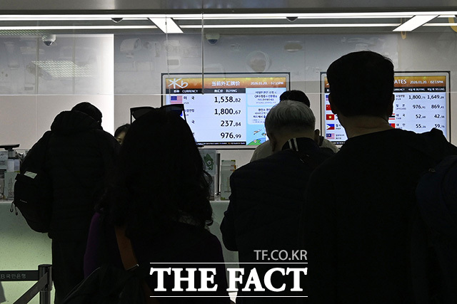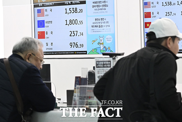 공항 환전소에선 원·달러 환율이 1538원대를 기록했다.