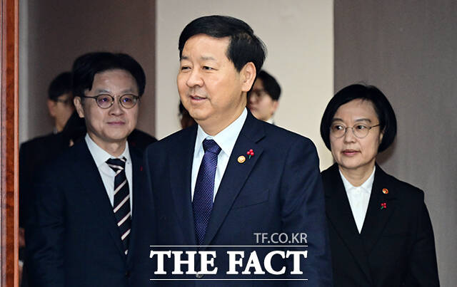 [더팩트ㅣ임영무 기자] 구윤철 부총리 겸 재정경제부 장관(가운데)이 21일 오전 서울 종로구 정부서울청사에서 열린 경제관계장관회의에 참석하고 있다.darkroom@tf.co.kr사진영상기획부 photo@tf.co.kr