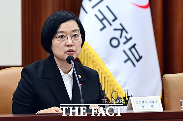 [더팩트ㅣ임영무 기자] 한성숙 중소벤처기업부 장관이 21일 오전 서울 종로구 정부서울청사에서 열린 경제관계장관회의에 참석해 발언을 하고 있다.