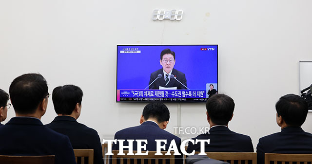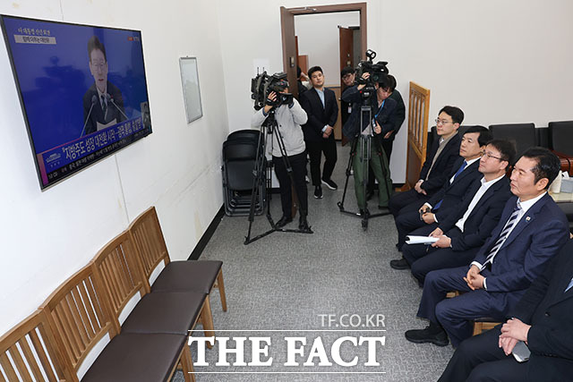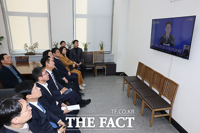 이재명 대통령 신년 기자회견 시청하는 민주당 지도부 [TF사진관]