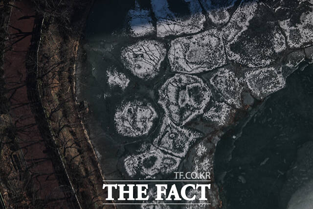 [더팩트ㅣ남윤호 기자] 북쪽에서 내려온 찬 공기로 전국 대부분 아침 기온이 영하 10도 아래로 떨어진 21일 오전 서울 송파구 석촌호수가 얼어있다.