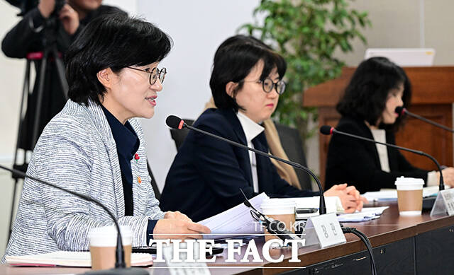 [더팩트ㅣ임영무 기자] 원민경 성평등가족부 장관이 22일 오후 서울 종로구 정부서울청사에서 열린 온라인상 청소년 안전을 위한 전문가 간담회에 참석해 모두발언을 하고 있다.