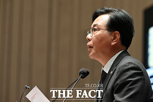 [더팩트ㅣ국회=남용희 기자] 송언석 국민의힘 원내대표가 22일 오후 서울 여의도 국회에서 열린 의원총회에서 발언을 하고 있다.
