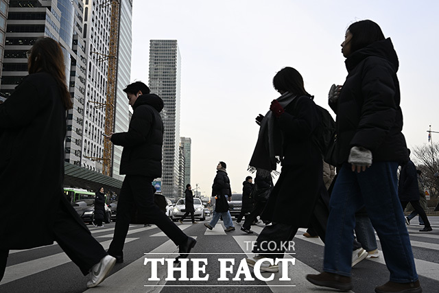 [더팩트 | 송호영 기자] 서울의 아침 최저 기온이 영하 9도로 떨어지는 등 한파가 이어지고 있는 26일 오전 서울 영등포구 여의도환승센터 건널목에서 시민들이 발걸음을 재촉하고 있다.