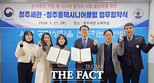 청주세관과 청주 흥덕시니어클럽은 청주국제공항 세관 업무지원과 지역사회 노인복지 향상을 위해 노력하기로 했다.
