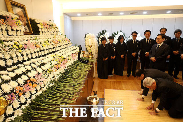 [더팩트ㅣ이효균 기자] 문재인 전 대통령과 김정숙 여사가 27일 오후 서울 종로구 서울대학교병원 장례식장에 마련된 고 이해찬 민주평화통일자문회의 수석부의장의 빈소를 찾아 조문하고 있다.