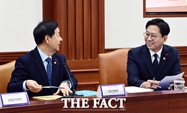 [더팩트ㅣ임영무 기자] 구윤철 부총리 겸 재정경제부 장관(왼쪽)과 배경훈 부총리 겸 과학기술정보통신부 장관이 28일 오전 서울 종로구 정부서울청사에서 열린 과학기술관계장관회의에 참석해 대화를 나누고 있다.