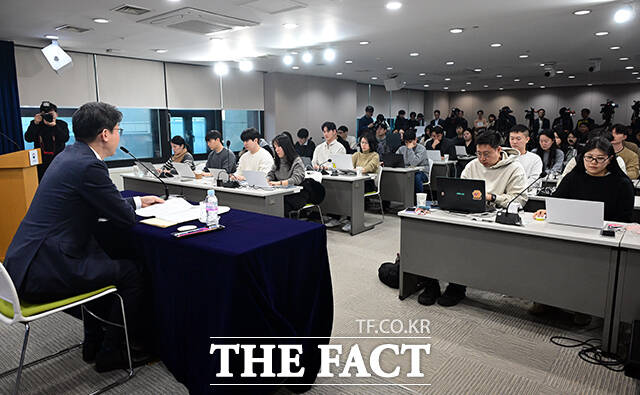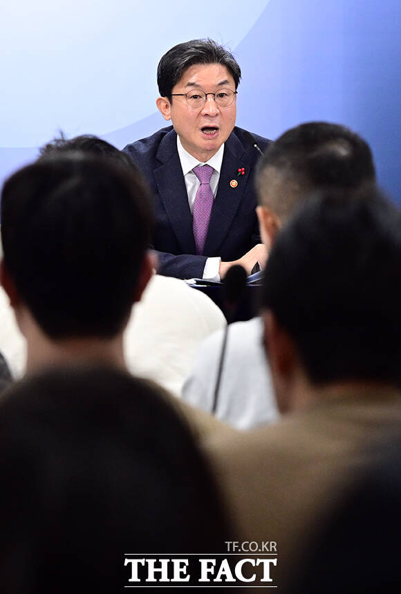 [더팩트ㅣ임영무 기자] 이억원 금융위원장이 28일 오전 서울 종로구 정부서울청사에서 열린 출입기자단 월례 간담회에 참석해 발언을 하고 있다.