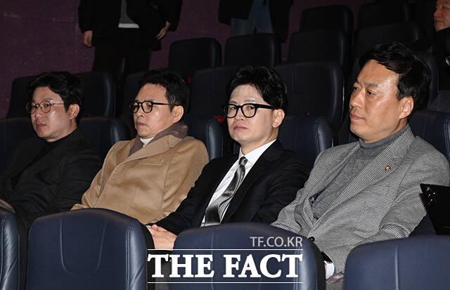 [더팩트ㅣ박헌우 기자] 한동훈 전 국민의힘 대표가 28일 오후 서울 영등포구의 한 영화관에서 '잊혀진 대통령: 김영삼의 개혁시대'를 관람하기 위해 착석하고 있다.