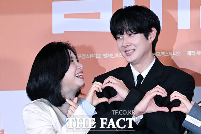 [더팩트ㅣ서예원 기자] 배우 장혜진(왼쪽)과 최우식이 29일 오후 서울 용산구 CGV 용산 아이파크몰에서 열린 영화 ‘넘버원’ 언론배급시사회 및 기자간담회에 참석해 포즈를 취하고 있다.