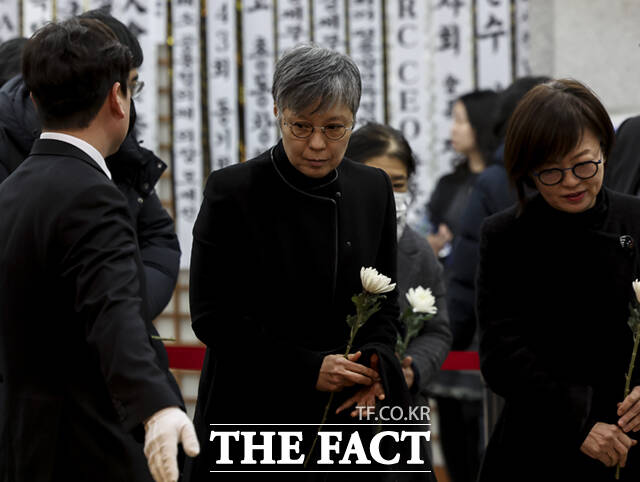 가수 이은미가 29일 서울 종로구 서울대학교병원 장례식장에 마련된 고 이해찬 전 국무총리의 빈소를 조문하고 있다. /사진공동취재단